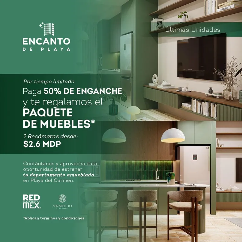 🎁 Encanto de Playa just launched a limited-time promo! Get a FREE furniture package when you pay 50% down. Secure one of the last 2-bedroom units from $2.6M in Playa del Carmen! #EncantoDePlaya #RivieraMaya #RealEstatePromo 📍 Playa del Carmen, Mexico #PlayaDelCarmen #PlayaDelCarmenRealEstate #RivieraMaya